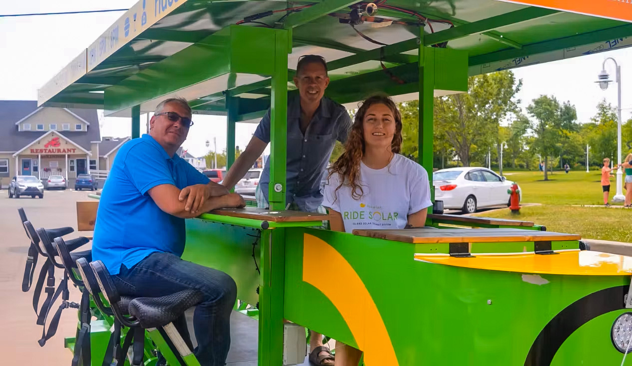 Established in 2015, Ride Solar is a private sector solution to an ongoing government commitment to reducing greenhouse gasses to achieve net-zero by 2040. The first Canadian company to offer both land & water tours via solar-electric vehicles, Ride Solar has reclaimed, rebuilt & repowered a 1967 CDN Heritage Vessel from the 1967 Montreal Expo into North America’s LARGEST solar-powered boat (the world’s FIRST solar-powered dinner cruise boat) in Charlottetown and built the world’s FIRST solar-powered, 14 passenger pedal busses (Party Bikes) in Charlottetown & Halifax to offer food & drink historical eco-tours to those who like to have fun while saving the planet.