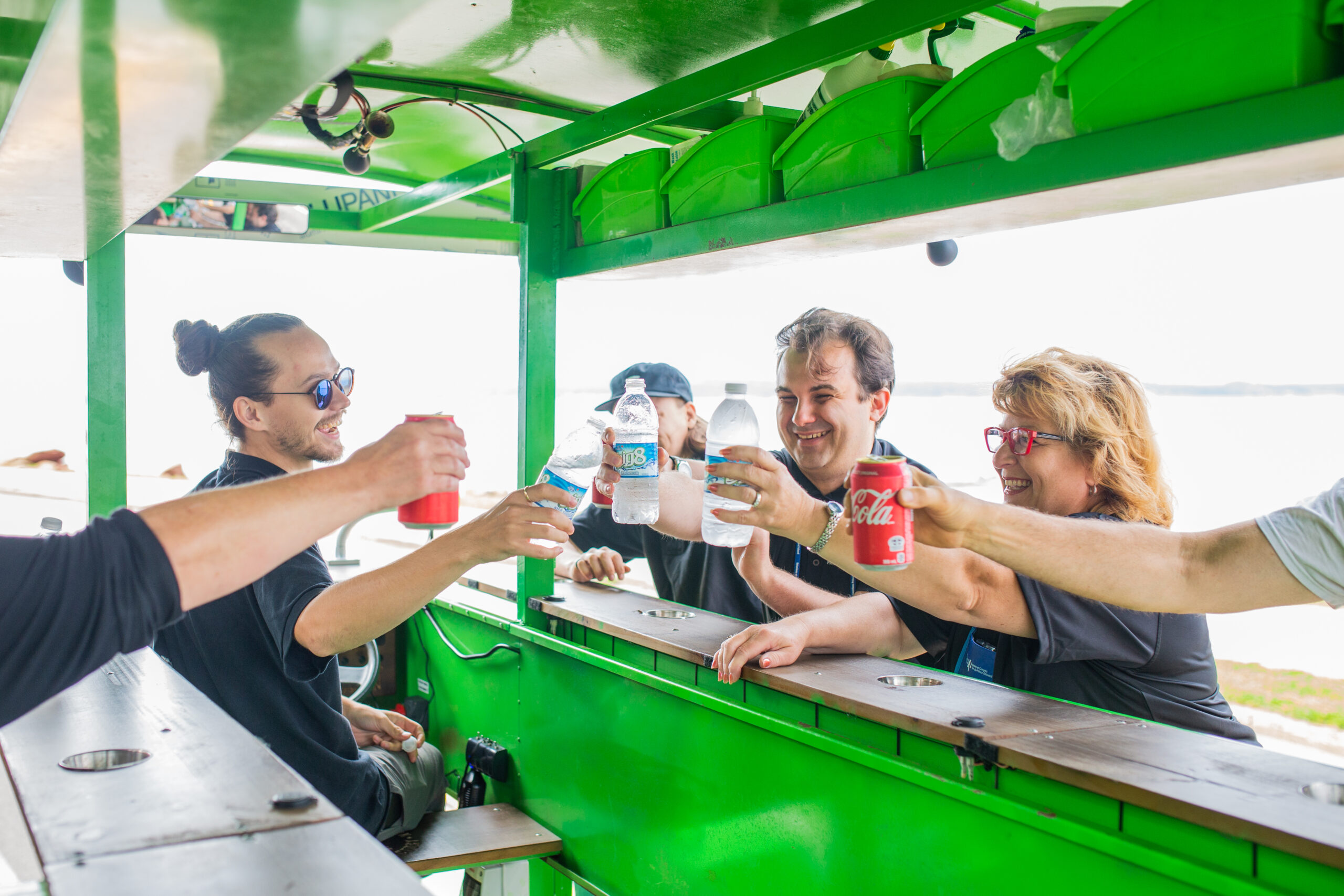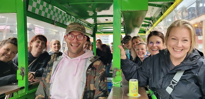 Our Pedal Bus is covered with deployable rain shields to go out in any kind of weather.